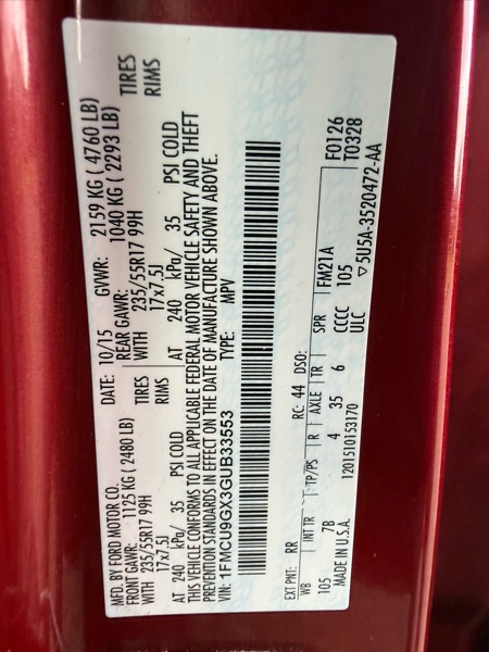 Vehicle Inquiry for 2016 Ford Escape SE 4WD